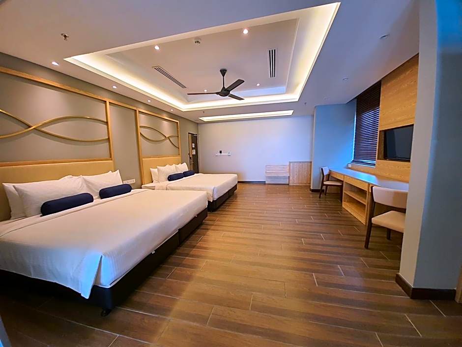 The spacious air-conditioned suite offers a flat-screen TV, a mini-bar, a safe deposit box, an electric kettle as well as sea views. The unit has 3 beds.